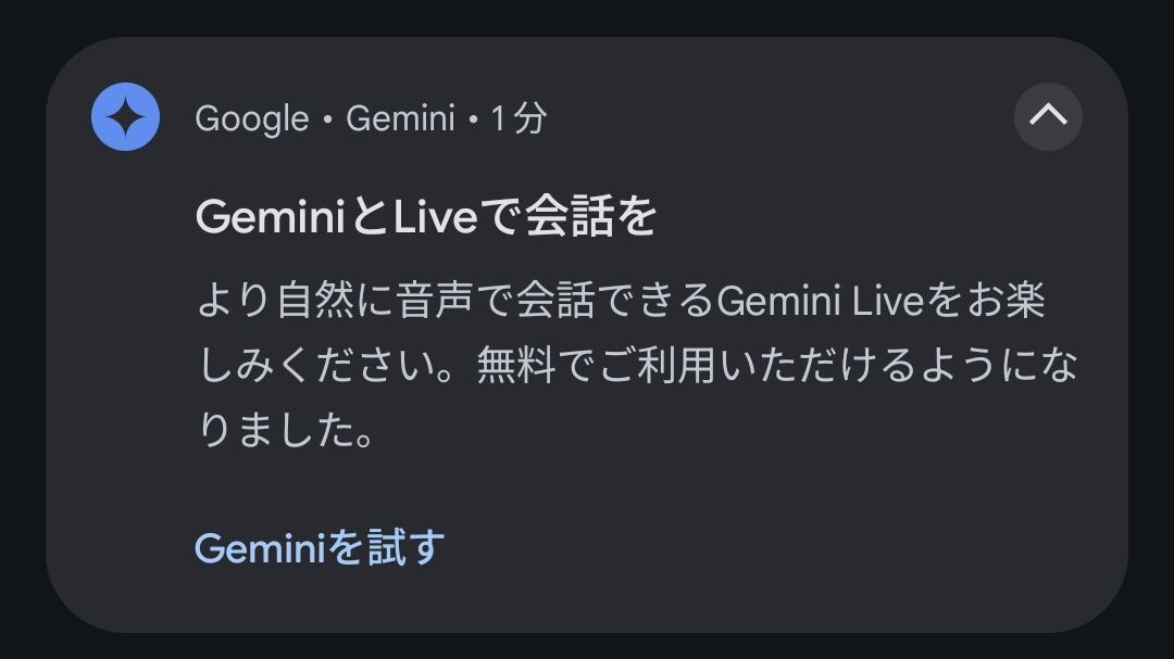 なんかこちらが問いかけて、Gemini のターンである、の判定もすごく絶妙でストレス無くわりと自然な会話ができるように感じました。