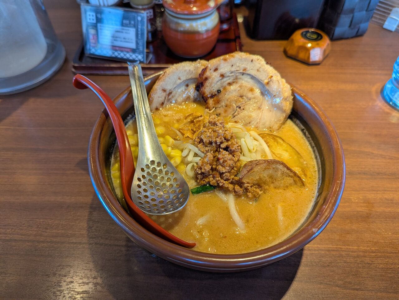 コーンをトッピングするとこんな穴開きレンゲも添えてくれるんですね。